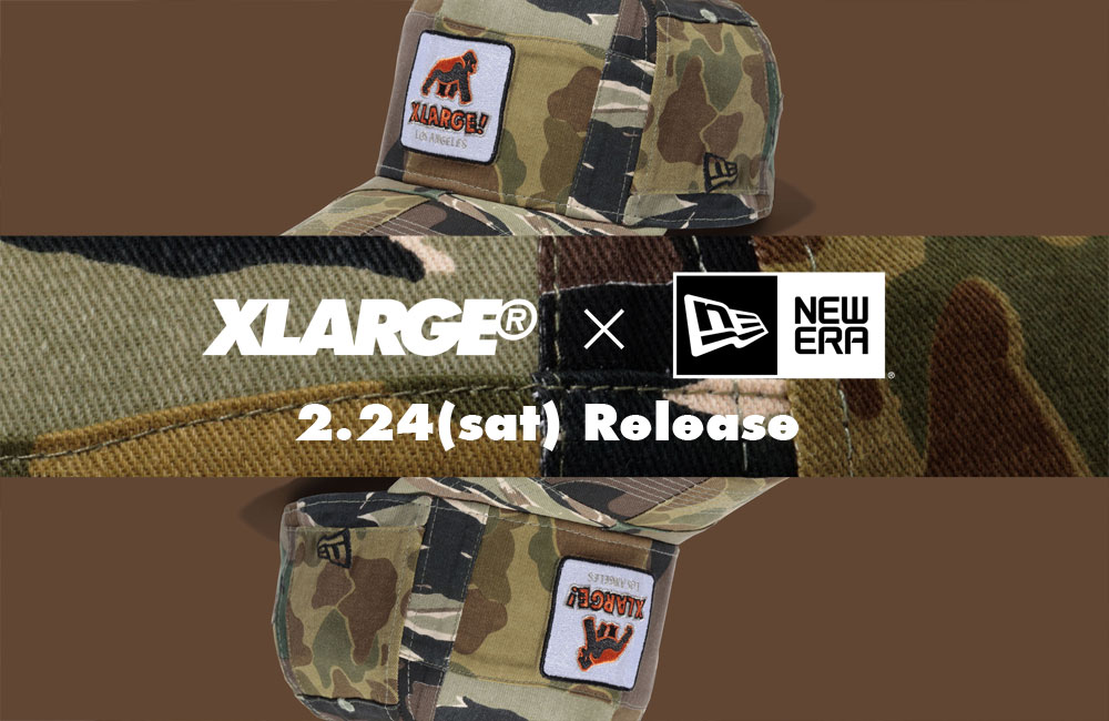 NEWERAとのコラボレーションモデル最新作。2015FWシーズン、NEWERA取扱店舗にてリリースされ即完売した話題のアイテムの新モデル「Patchwork Camo」が待望のリリース決定。人気モデル「9FORTY D-Frame」をベースに、XLARGE®の「WALKING APE」のパッチを施したデザイン。XLARGE® STOREとオンラインストア「calif」「ZOZOTOWN」にて、2月24日(土)より緊急発売予定!