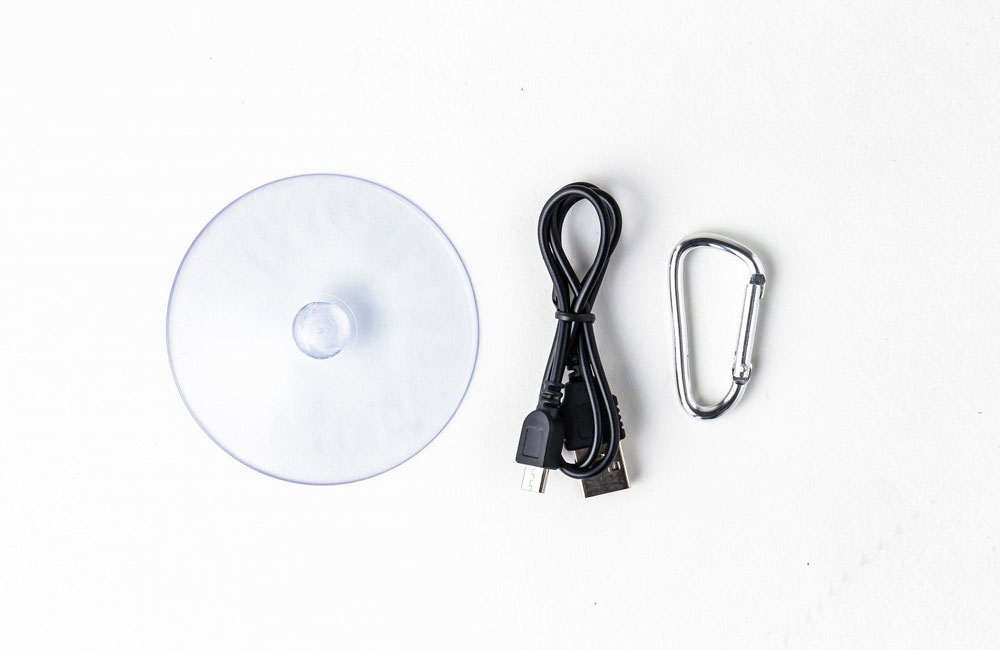 ②本誌オリジナルアイテムのBluetoothスピーカーの写真を撮影。