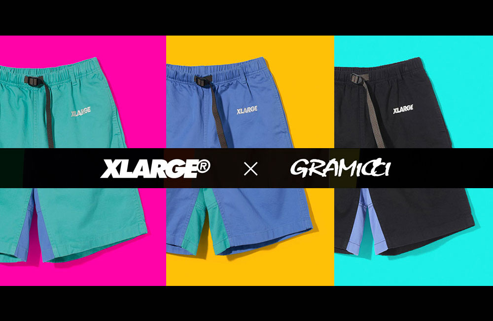 ブランドの代名詞的存在であるグラミチショーツ。股下は 180度 開脚可能なガゼットクロッチ仕様になっており、快適性と足運びの良さを実現。 片手で簡単にサイズ調節ができるウェビングベルトを使用した本格的な仕様。身頃とクロッチ部分の配色や、ネオンカラーがアクセントになったXLARGE®オリジナルのテープが本コラボレーションならではのデザインとなっている。