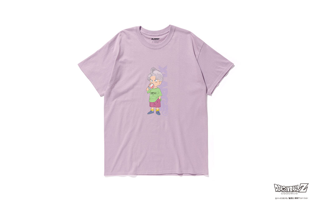登場人物の名シーンと、XLARGE®のアイコニックなロゴとをミックスアップした3つのグラフィックが完成。天下一武道会前の「ブルマ」、幼少期の「トランクス」の自宅でのシーン、最終形態の「魔人ブウ」の戦闘シーンを切りとり、登場人物や登場シーンを連想させるコンセプチュアルなカラーウェイで展開する。
