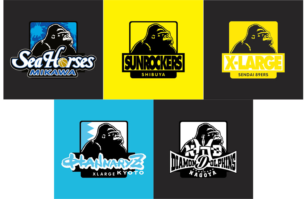 本コレクションは、XLARGE®のブランドロゴ「OGゴリラ」に B.LEAGUEのオフィシャルロゴを加えてリデザインした「B.LEAGUE OG」ロゴを配したアイテムを展開。ストリート感溢れるカモフラージュ柄に施したプリントTシャツ2色と、シンプルなカラーでまとめたタオルマフラー、ステッカーをライナップした魅力的なコレクションとなっている。また、B1の17クラブ、 B2の5クラブ全23種類のTシャツで、構成される各クラブとのコラボレーションは、チームカラーやチームロゴを「OGゴリラ」に落とし込んだグラフィックが胸に大きくレイアウト。Tシャツというコートを舞台に、各チームと「OGゴリラ」の個性をぶつけ合う「熱さ」を表現するストリートカルチャーとスポーツの融合したコレクションとなっている。