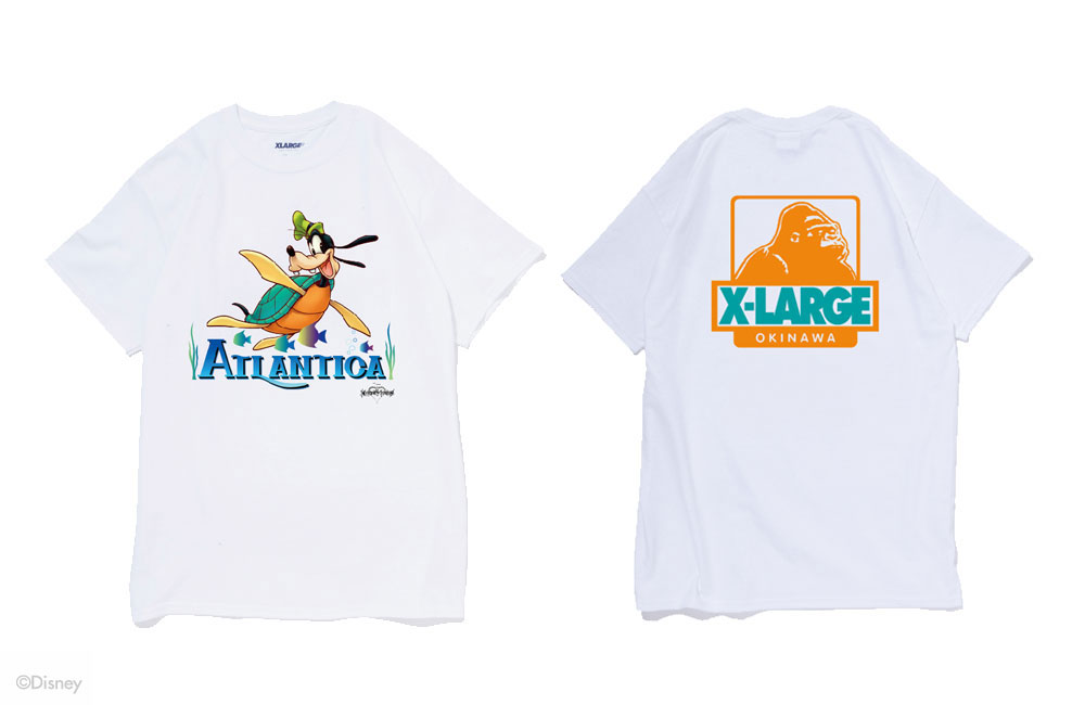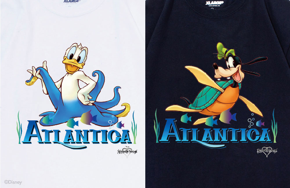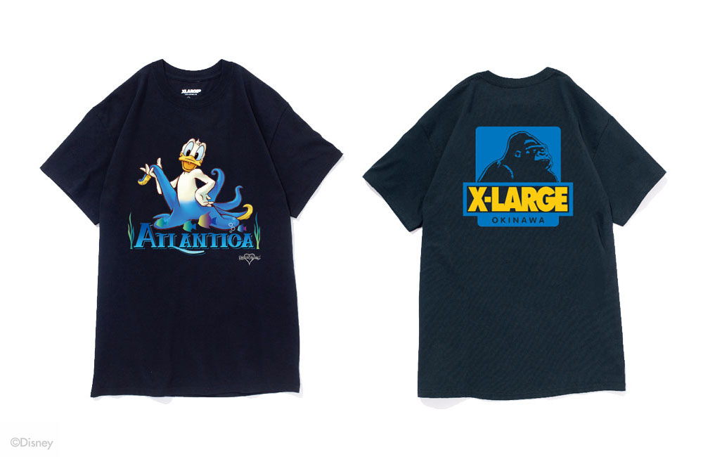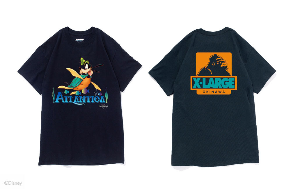6月9日(金)、XLARGE®からゲームソフト「キングダム ハーツ」コレクションがリリース。XLARGE®/X-girl OKINAWAにて店舗限定Tシャツを発売。「キングダム ハーツ」シリーズのリトル・マーメイドワールドに登場する、王宮魔導士のドナルドと、王宮騎士隊長のグーフィー。その二つのキャラクターが、人魚のアリエルが住む世界「アトランティカ」に行ったときだけ、身体がカメとタコに変化するキャラクターをフロントにプリント。そして、バックにはフロントのキャラクターのカラーリングからインスパイヤーを受けたXLARGE®のアイコン「OG ゴリラ」のXLARGE®/X-girl OKINAWAバージョンを施しました。南国、沖縄の美しい海をイメージした限定Tシャツの登場です。