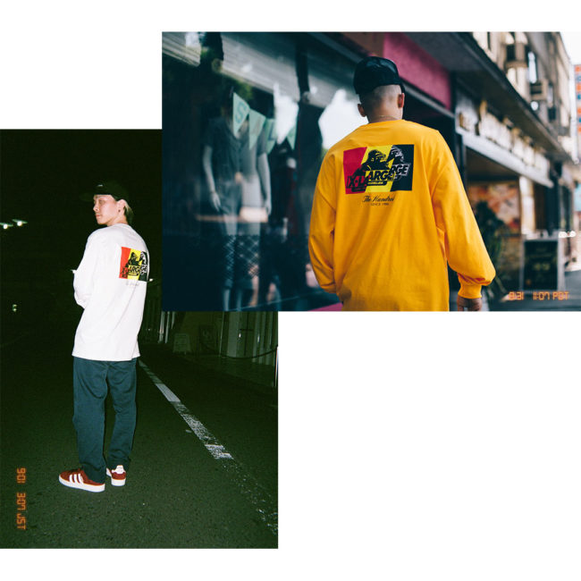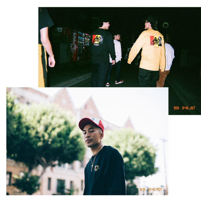 ルックブックは、「夜の東京」と「昼のLA」という2つの舞台で撮影され、フィルムには、日米の時差を越えて同時刻であることを示すタイムスタンプが記されている。また、現在の日本国内旗艦店である「XLARGE®︎ HARAJUKU」と、1991年にオープンした第一号店「X-LARGE STORE」のあった街、ロス・フェリッツのエリアをロケーションに選び、このコラボレーションに込められた強いコンセプトを表現している。