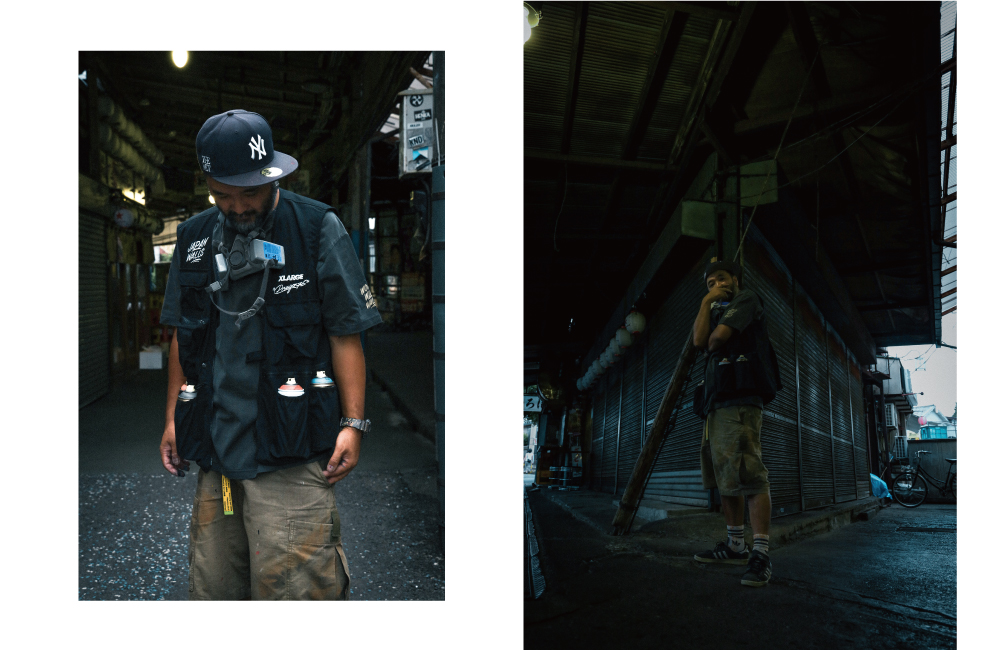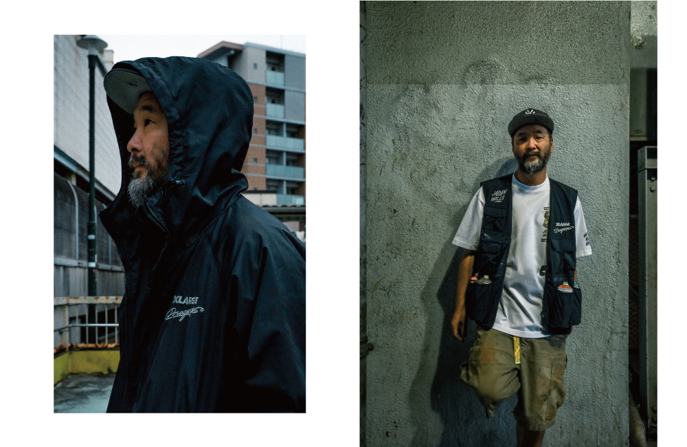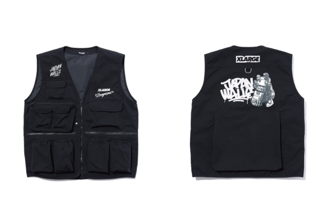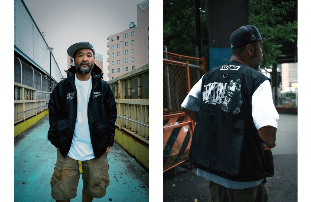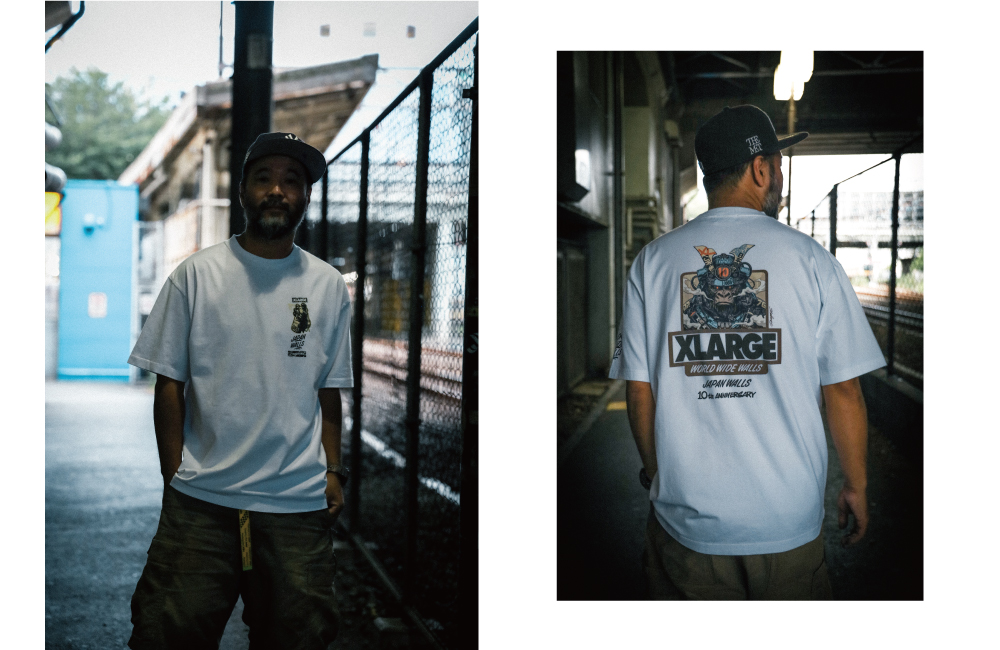 この節目を記念して、XLARGEはDragon76を迎え、JAPAN WALLSとのトリプルコラボレーションアイテムをリリース。アーティストのための実用的なアイテムとして、スプレー缶の収納ポケットを備えたベストとジャケット、Tシャツを製作しました。JAPAN WALLS参加アーティスト全員の名前を連ねた10周年Tシャツは、100枚限定のスペシャルアイテムとなっています。
